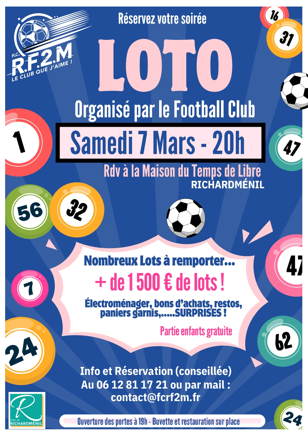 Renseignements au 06.12.81.17.21 ou par mail contact@fcrf2m.fr