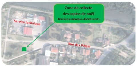 La commune en lien avec la COVALOM met à votre disposition, une zone de collecte de vos sapins de Noël naturels rue des Pâquis selon plan ci-après.