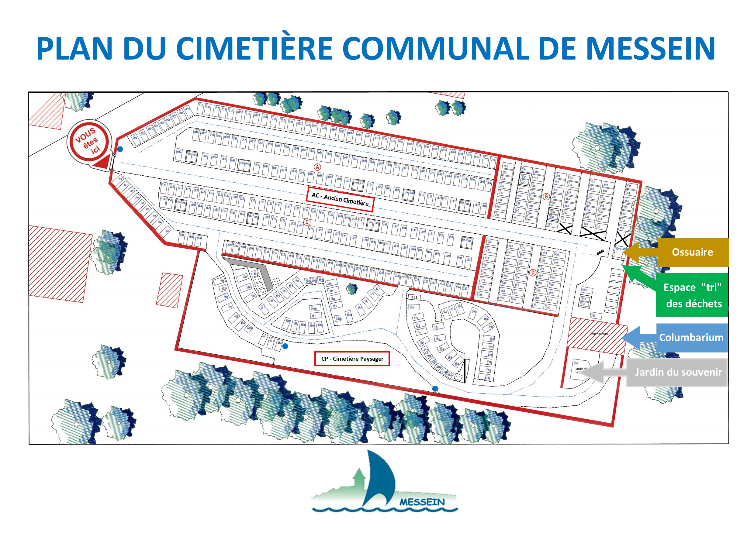 Le cimetière de Messein est constitué de plusieurs espaces aménagés :
